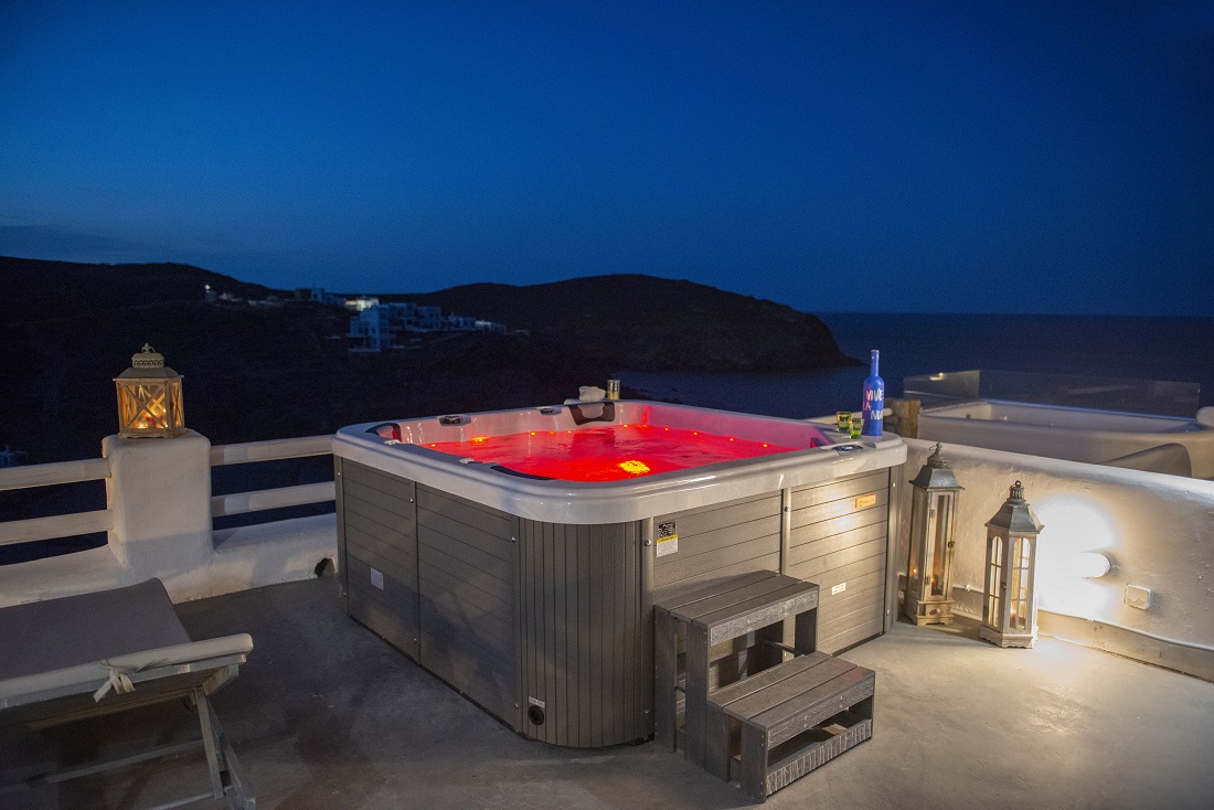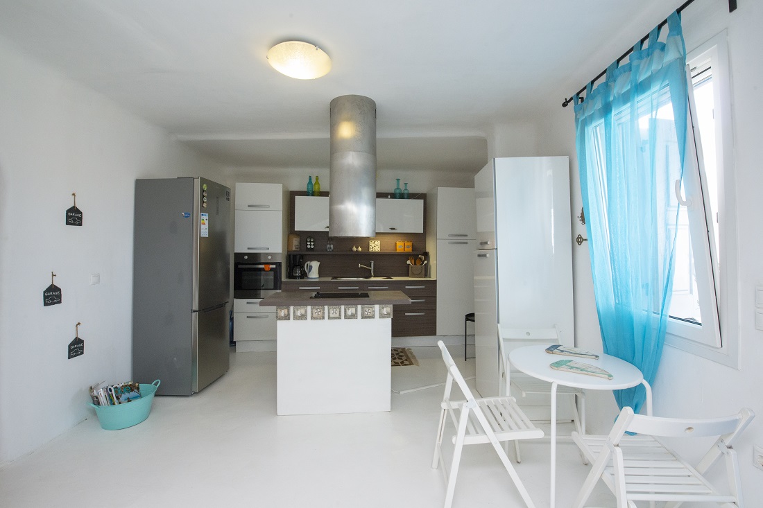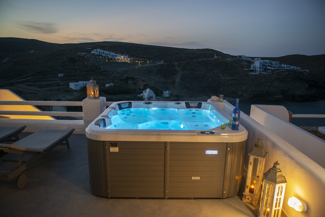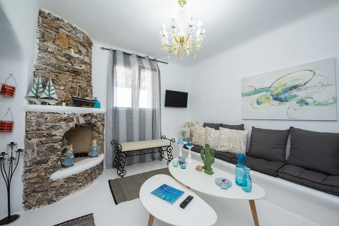 This is a 120m2 beachfront residence with view to the Aegean Sea and hot tub on the veranda overlooking the sea. The house is located in Merhia Bay, a beautiful private bay, 50 meters from the sea, very close to the road network of the area, while preserving its autonomy and quietness. The residence includes two bedrooms, two double bed bedroom & one with 2 single beds bedroom, and two Cycladic-style style bathrooms. On the front side of the house there is a fully equipped veranda with view to the Aegean Sea where guests can enjoy their breakfast or dinner or even sunbathing. Inside the house there is a large modern living room and a dining room. It has kitchen utensils and all kinds of sheets, pillows, blankets, etc. are provided. There is private parking space.