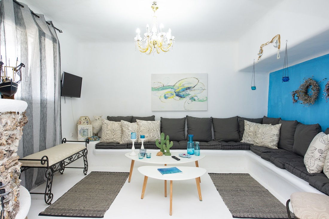 The beachfront Villa Merhia offers Cycladic-style accommodation with furnished balconies overlooking the Aegean Sea. The cosmopolitan town of Mykonos lies within a 20-minute drive and 10 minutes away from Lia beach and 15 minutes away from Ftelia beach and Kalo Leavadi beach. It is an ideal choice for