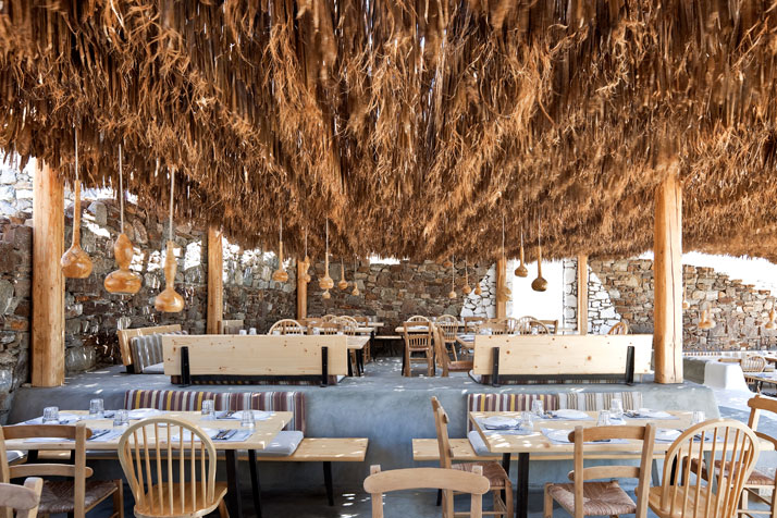 Alemagou Set on Ftelia beach, Alemagou bar & restaurant is breath taking in its simplicity and boho style. Traditional recipes, amazing cocktails and music is all you need to energize your day and feel the Mykonian vibe.